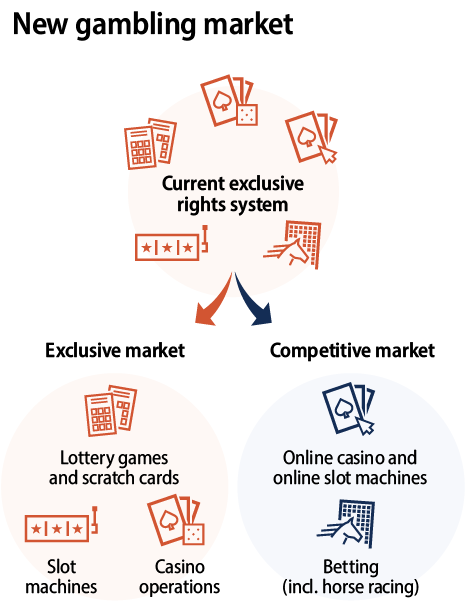 Veikkaus Oy will retain the monopoly on lottery-type games, scratch cards, and physical slot machines and casino games. Many European countries, including Denmark and Sweden, have already introduced a similar gambling system combining a monopoly and a competitive market approach.
